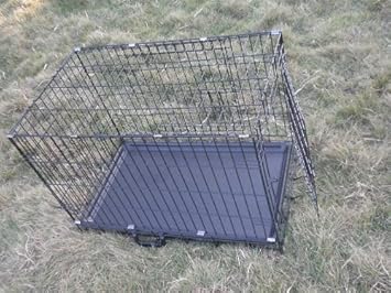 Folds down easily - take it anywhere! Size: 36"(L) x 22"(W) x 25"(H) Fully assemblied. Just open and fold. Rounded Edges - Safer for puppy Material: low carbon steel wire Durable Electro-Coat Finish Two doors for each cage, one on the side, one on the front. Tough Coated ABS Pan: Deluxe and Easy to clean! No Divider