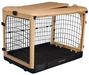 The Pet Gear The Other Door Steel Crate is an easy, comfortable, attractive way to transport your pet. The heavy-duty blow-molded plastic crate has rounded corners with no sharp edges to scratch your wood floor or snag your carpeting. It fits in the rear of most SUVs and minivans. Built-in wheels and a pull handle provide easy movement from room to room. Heavy-gauge curved steel wire sides and easy-locking latches ensure your pet will stay put and rest comfortably on the included fleece pad.